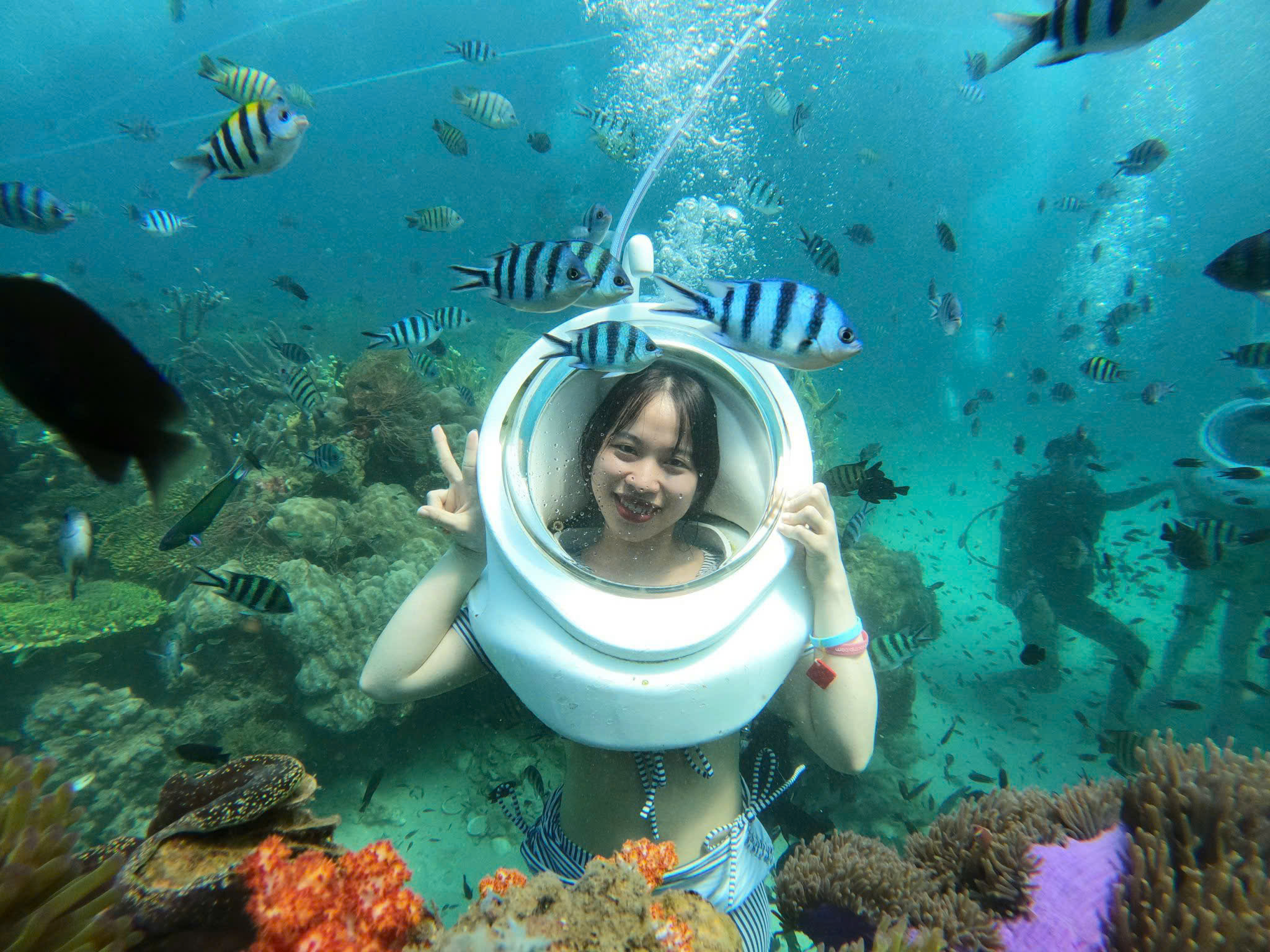 Tour Cáp Treo Hòn Thơm Đi Bộ Dưới Biển Ngắm San Hô là hành trình khám phá những hòn đảo xinh đẹp nhất Phú Quốc Du khách sẽ được tận hưởng không gian giải trí sôi động tại Aquatopia Water Park trải nghiệm đi bộ dưới biển chiêm ngưỡng thế giới san hô rự