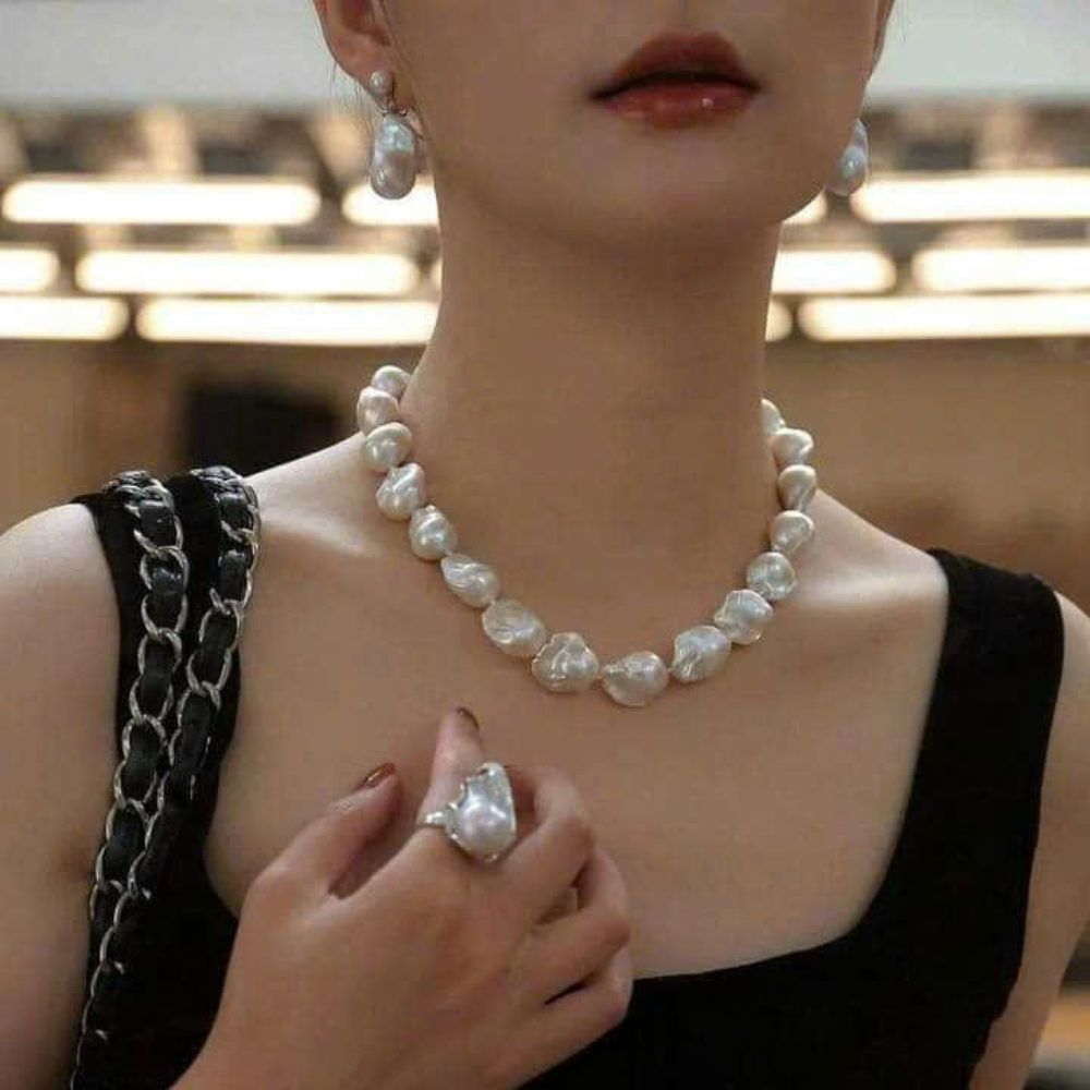 Ngọc Baroque nước ngọt Edison gây ấn tượng với hình dáng độc bản mỗi viên ngọc mang một vẻ đẹp riêng không trùng lặp Sở hữu kích thước lớn ánh xà cừ dày và màu sắc tự nhiên cuốn hút ngọc Edison Baroque thể hiện phong cách phóng khoáng hiện đại nhưng