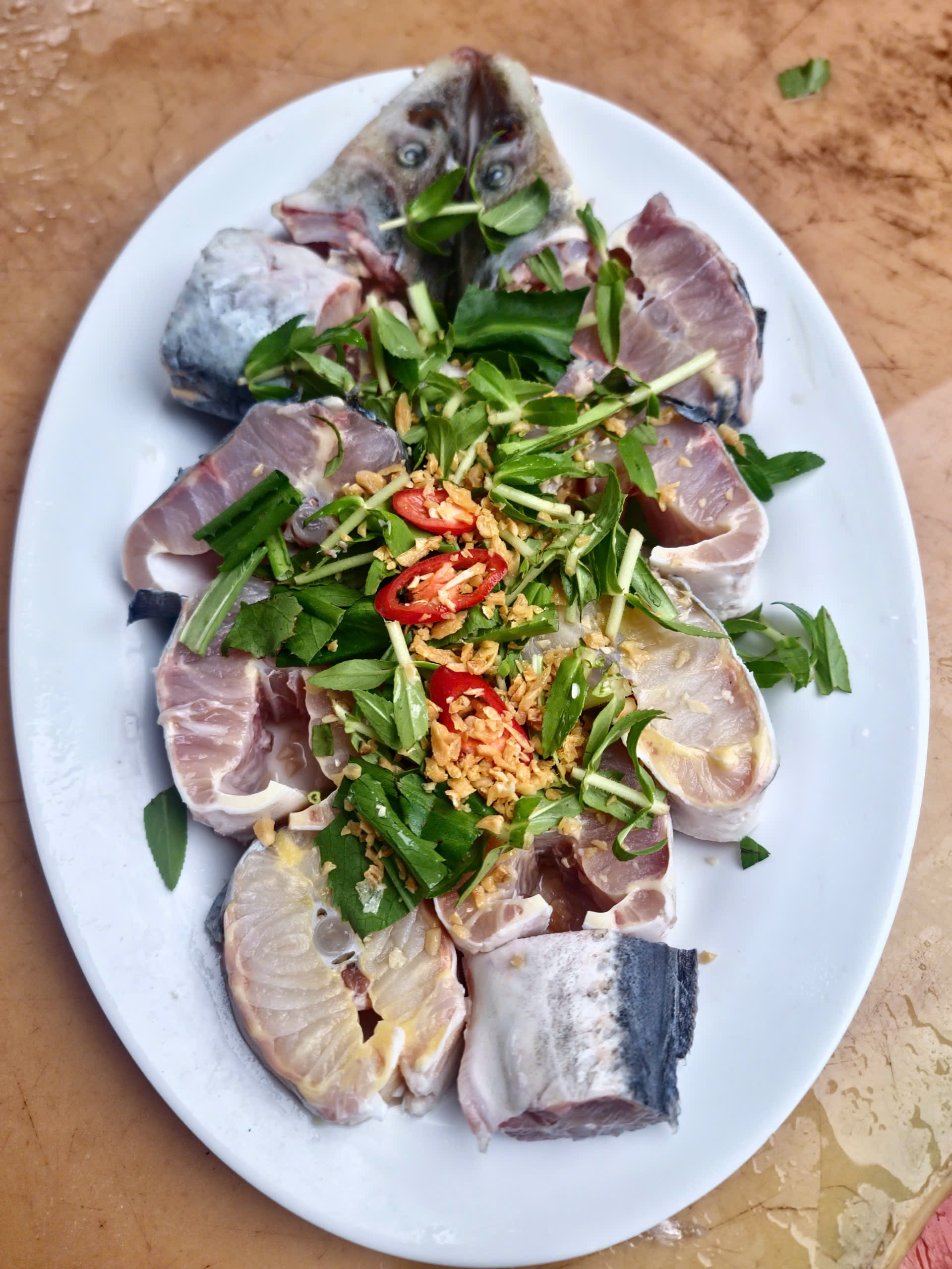 Cá tầm nấu mẻ ở Phú Điền ăn thanh mát, cá mềm, nước canh chua ngọt vừa phải, rất hợp khẩu vị.